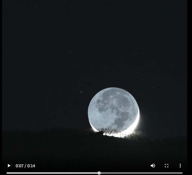앞에서 보이는 대덕산 정상 너머로 예쁜 초승달이 지는 모습이 보입니다.